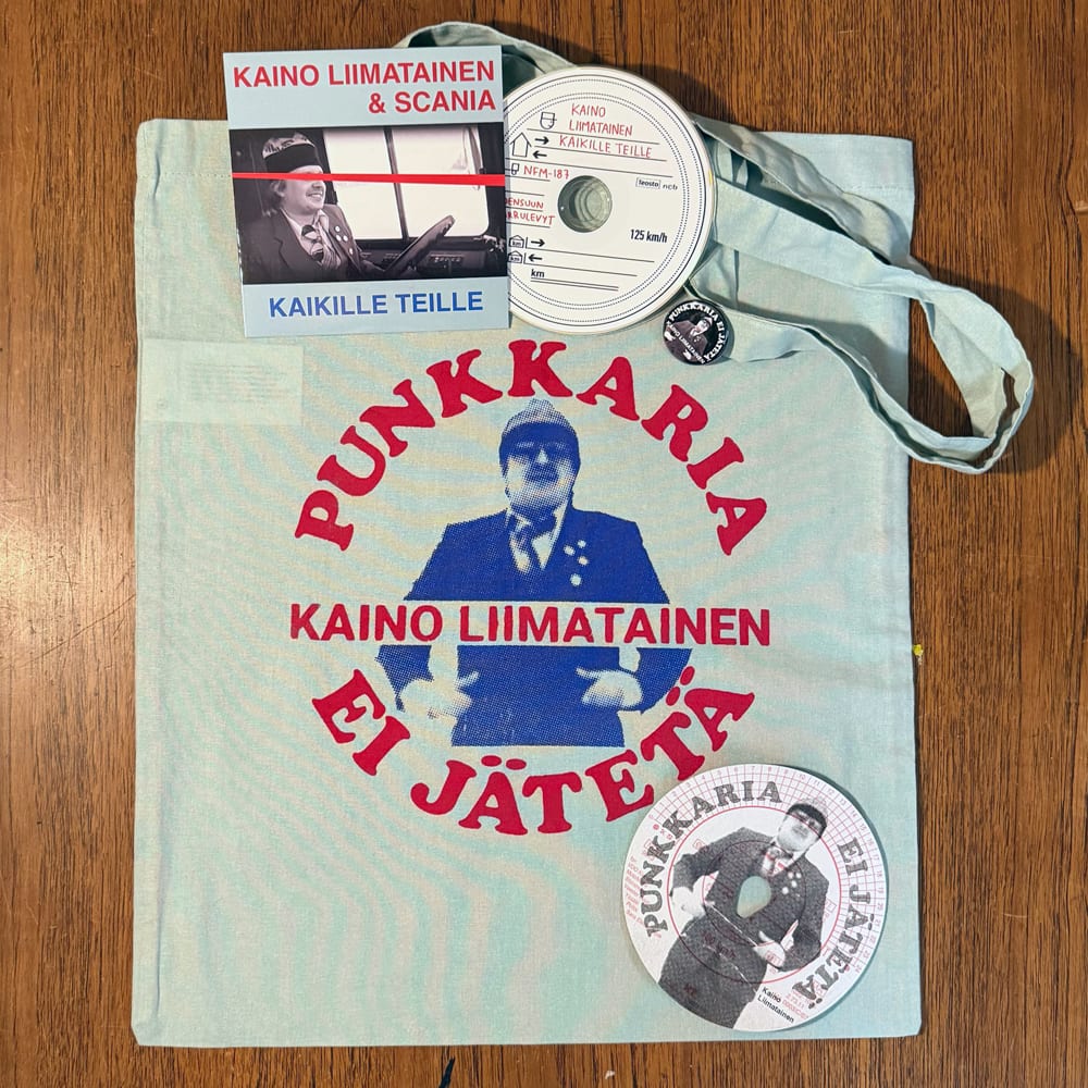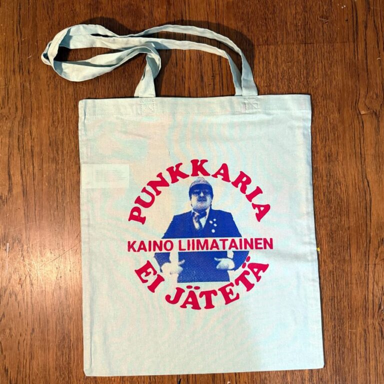 Luononvalkoinen Kaino-kassi. Käsin painettu kahdella värillä.